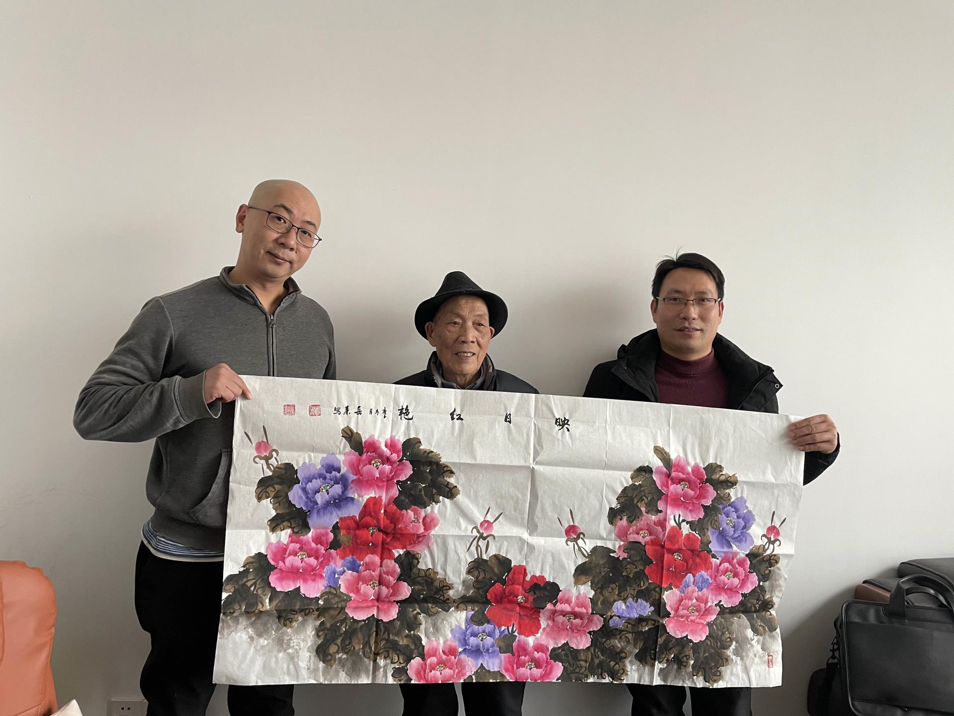 以下是繪畫家劉樹林劉教授和他的作品“映日紅艷”與我司總經理劉仁助、副總彭迪的合照。